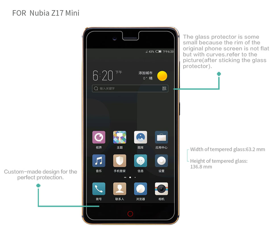 - Compatible Model: ZTE Nubia Z17 Mini- Product Category: protective film - Package Size: 203*116*12mm - Product Color: transparent - Protects your love phone screen from scratches and dust
