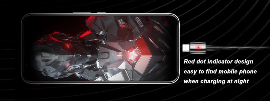 Nubia Type-C 2M Woven Data Cable features red dot indicator design, easy to find the phone when charging at night.